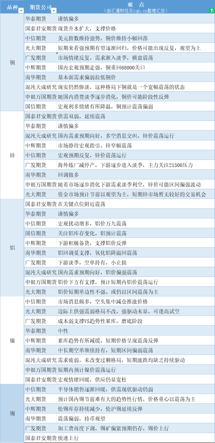 期货公司观点汇总一张图:1月17日有色系(铜、锌、铝、镍、锡等)