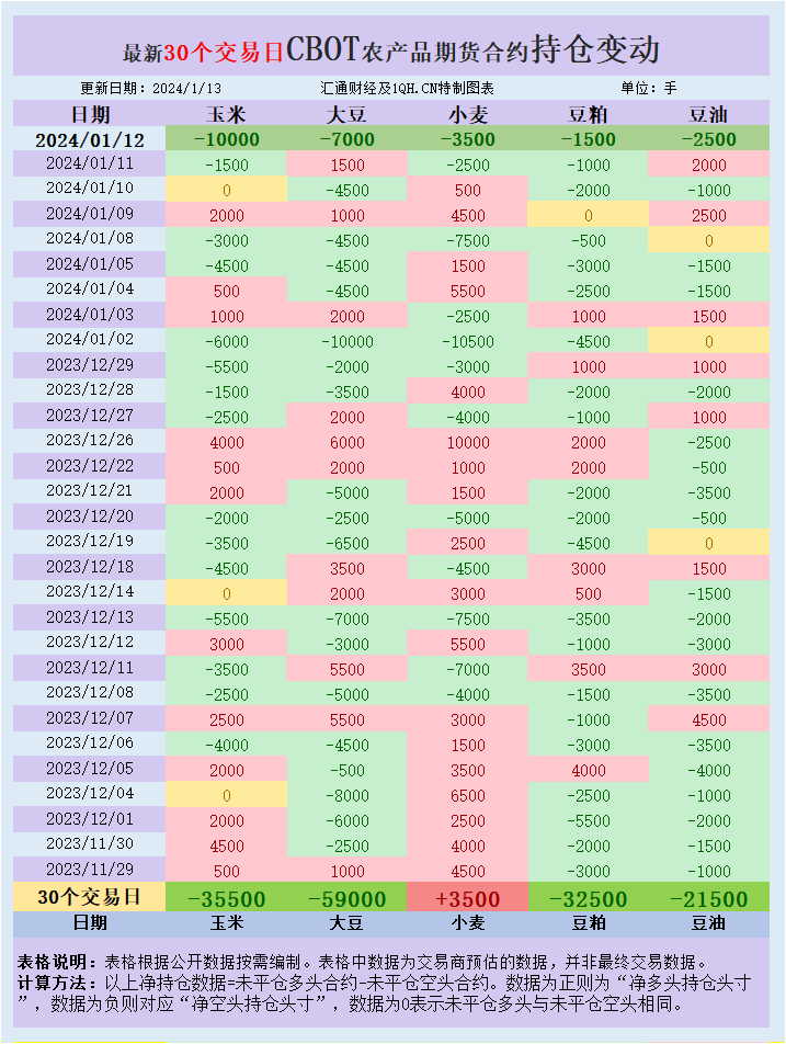 CBOT持仓:基金增加美豆、玉米、小麦净空头