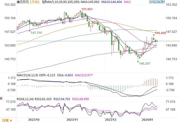 美联储3月降息押注逼近80%,美元/日元鏖战145,若破144.71则下看200日均线