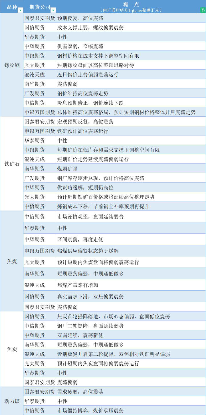 期货公司观点汇总一张图:1月10日黑色系(螺纹钢、焦煤、焦炭、铁矿石、动力煤等)