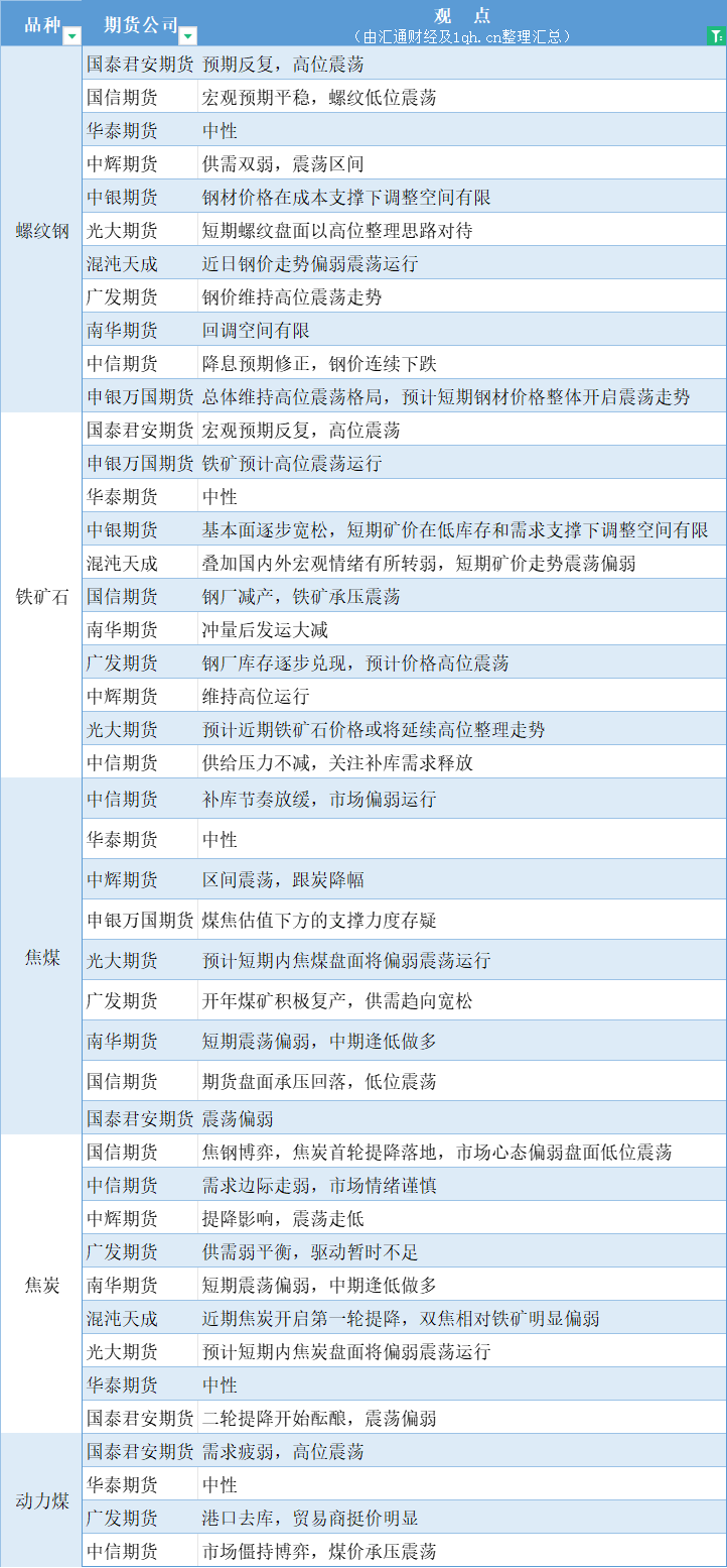 期货公司观点汇总一张图:1月9日黑色系(螺纹钢、焦煤、焦炭、铁矿石、动力煤等)