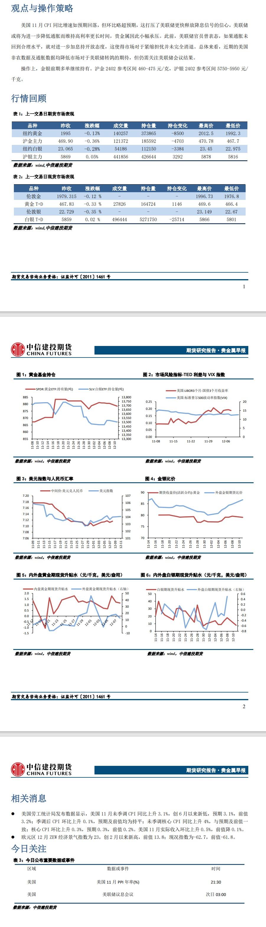 中信建投期货12月13日早报:美国CPI略超预期 贵金属冲高回落
