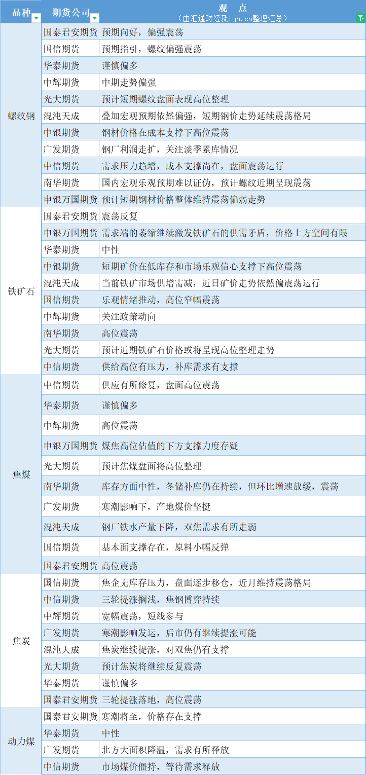 期货公司观点汇总一张图:12月12日黑色系(螺纹钢、焦煤、焦炭、铁矿石、动力煤等)