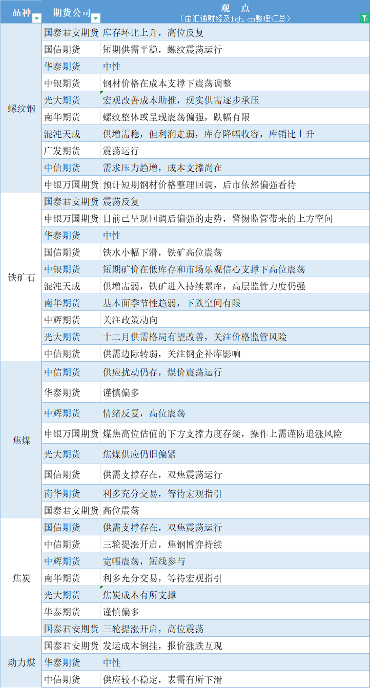 期货公司观点汇总一张图:12月4日黑色系(螺纹钢、焦煤、焦炭、铁矿石、动力煤等)