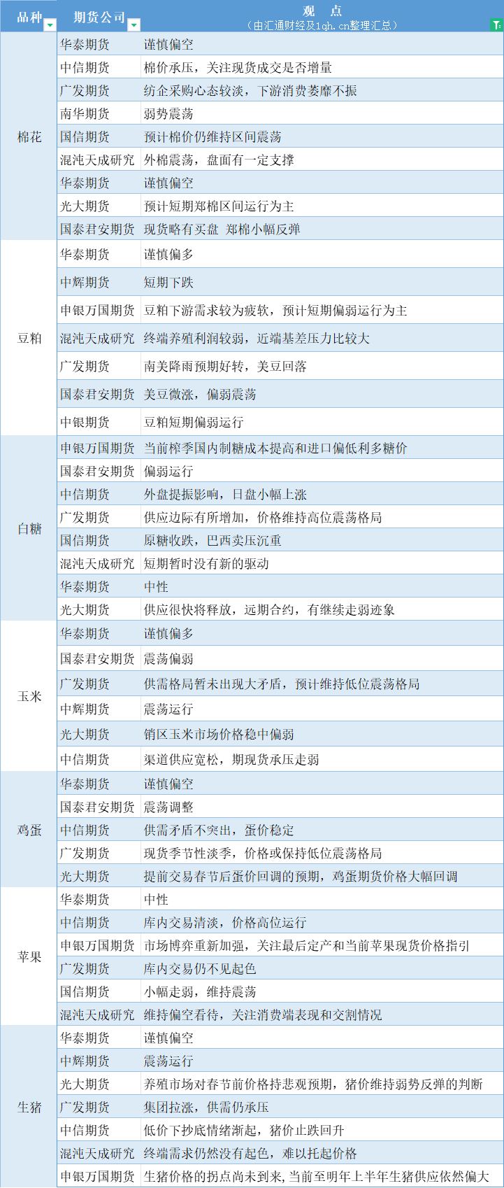 期货公司观点汇总一张图:11月30日农产品(棉花、豆粕、白糖、玉米、鸡蛋、生猪等)