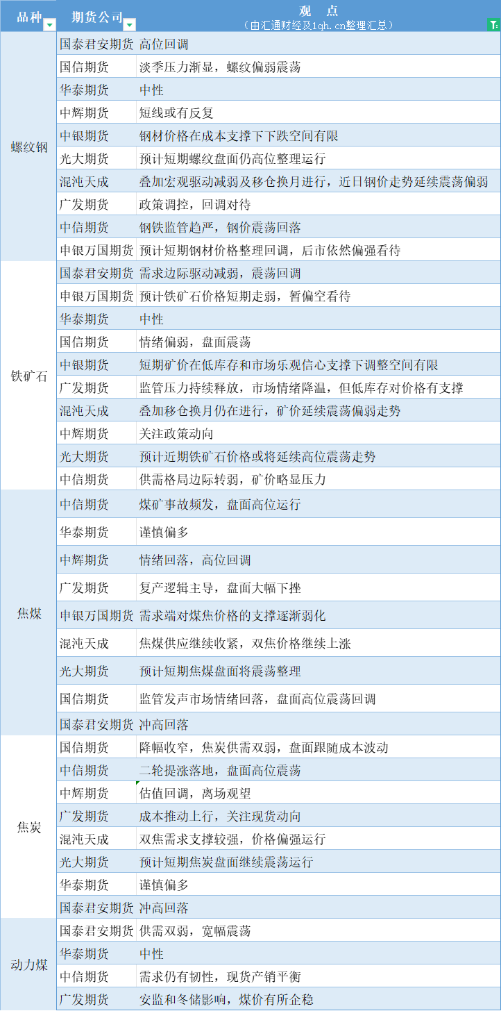 期货公司观点汇总一张图:11月30日黑色系(螺纹钢、焦煤、焦炭、铁矿石、动力煤等)