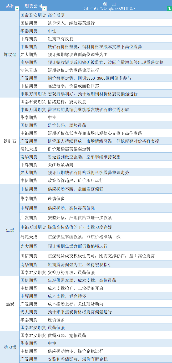 期货公司观点汇总一张图:11月28日黑色系(螺纹钢、焦煤、焦炭、铁矿石、动力煤等)
