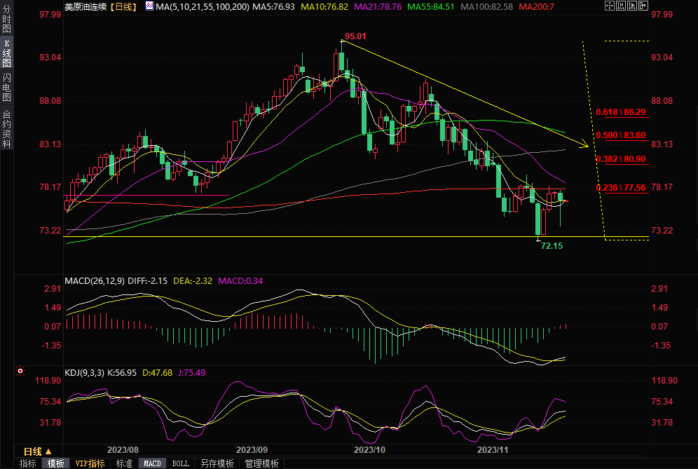 一张图:2023/11/22黄金原油外汇股指"枢纽点+多空占比"一览