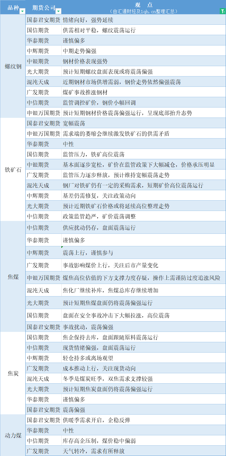 期货公司观点汇总一张图:11月17日黑色系(螺纹钢、焦煤、焦炭、铁矿石、动力煤等)