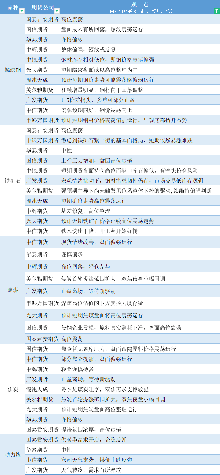 期货公司观点汇总一张图:11月14日黑色系(螺纹钢、焦煤、焦炭、铁矿石、动力煤等)