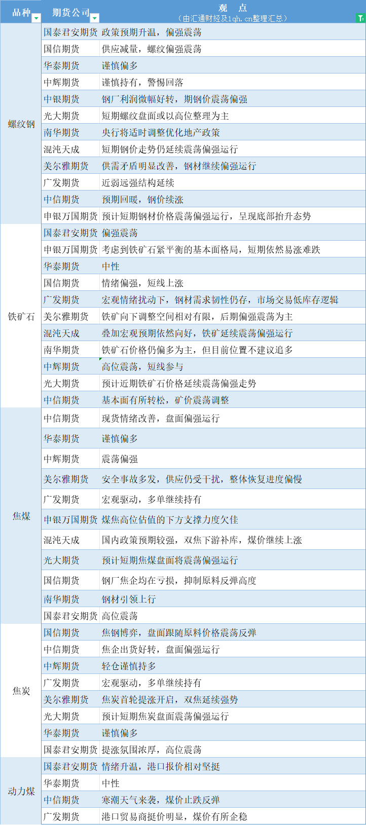 期货公司观点汇总一张图:11月10日黑色系(螺纹钢、焦煤、焦炭、铁矿石、动力煤等)