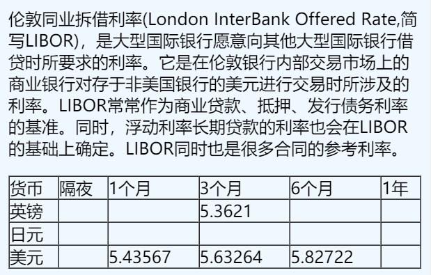 11月9日伦敦银行间同业拆借利率(英镑、日元、美元)