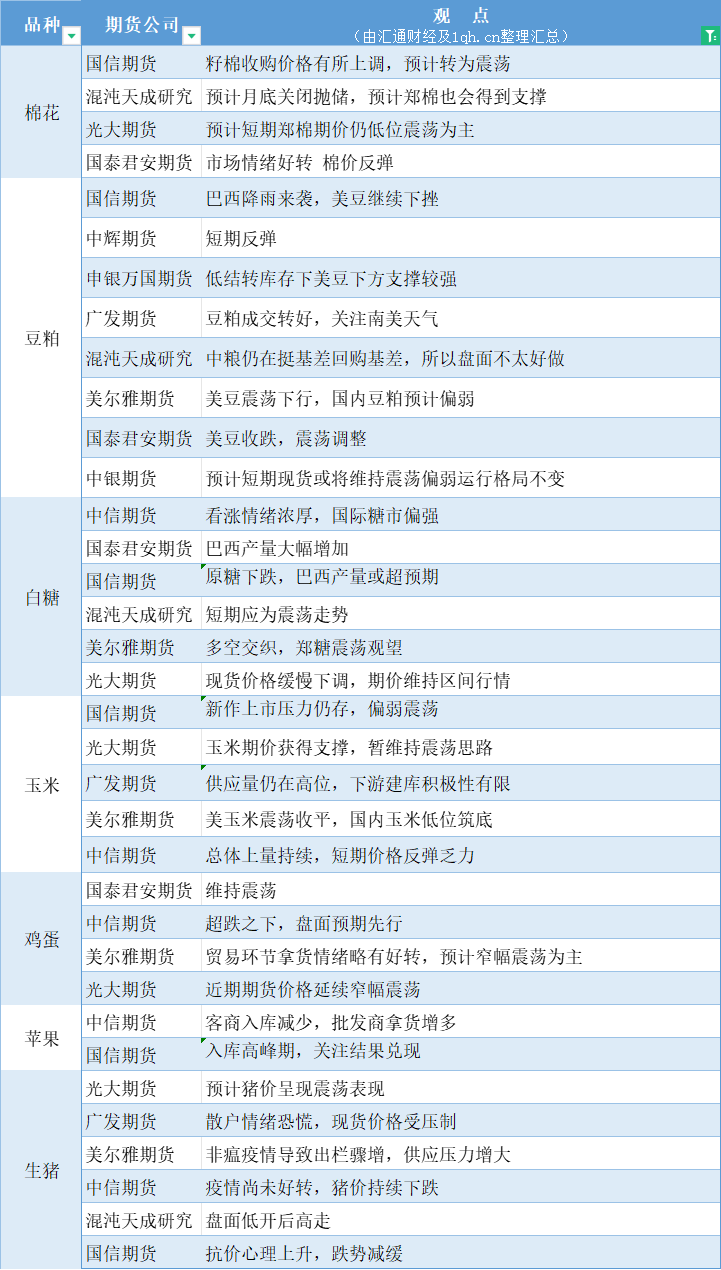 期货公司观点汇总一张图:10月27日农产品(棉花、豆粕、白糖、玉米、鸡蛋、生猪等)