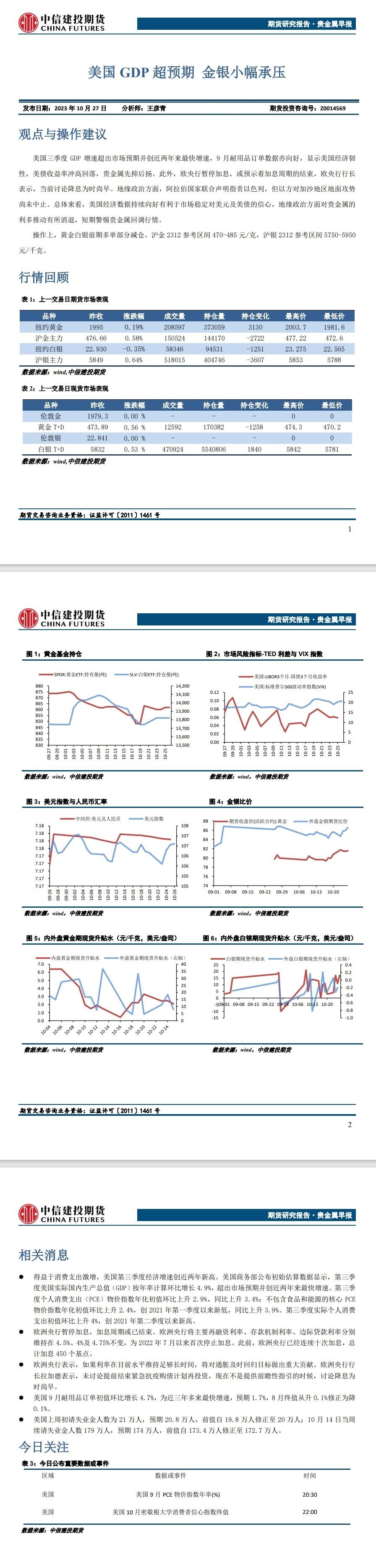 中信建投期货10月27日贵金属日报:美国 GDP 超预期 金银小幅承压