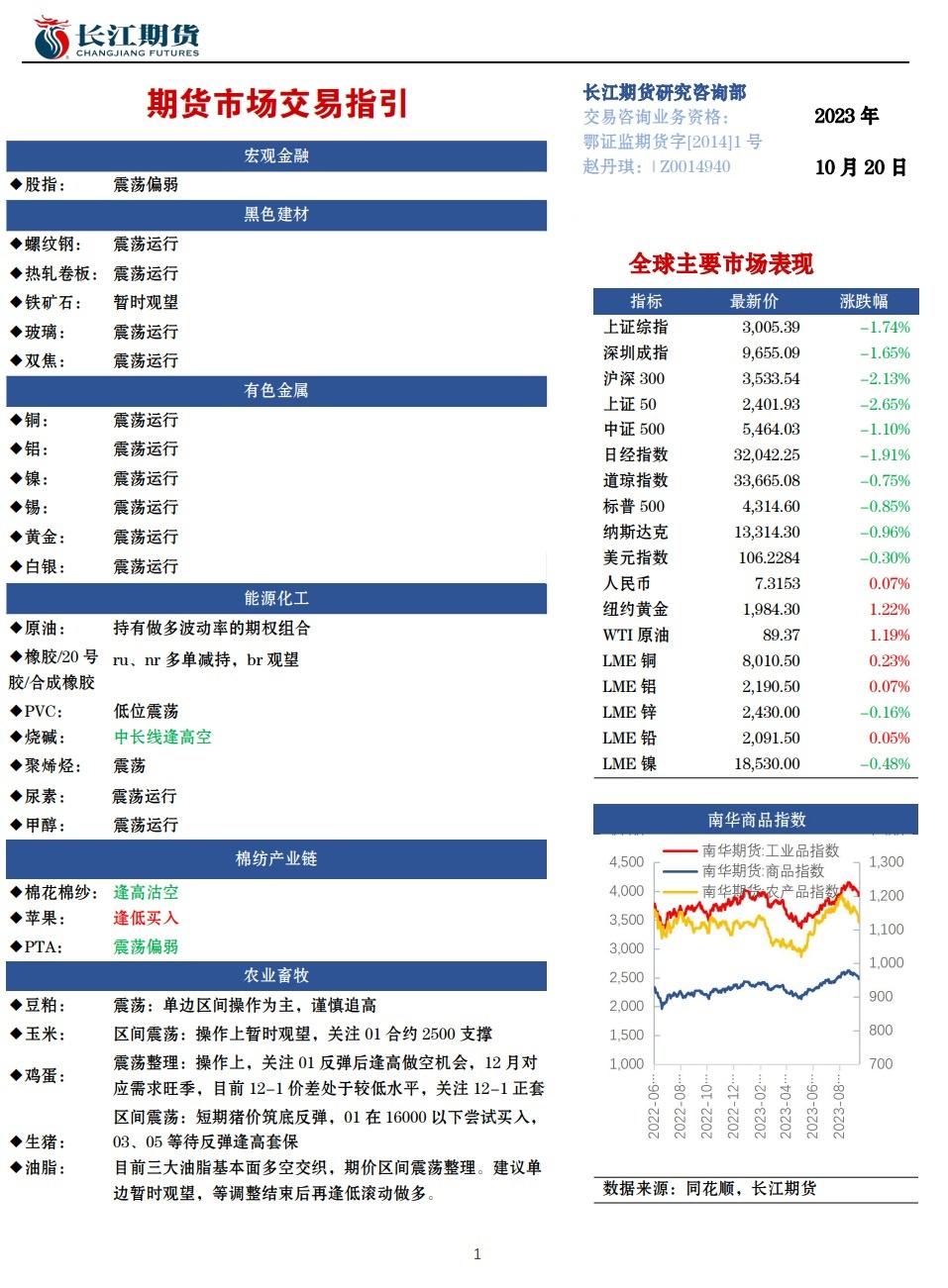 长江期货10月18日期货市场交易指引