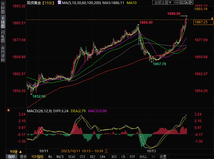 COMEX黄金突破1900关口,一分钟成交1.89亿美元