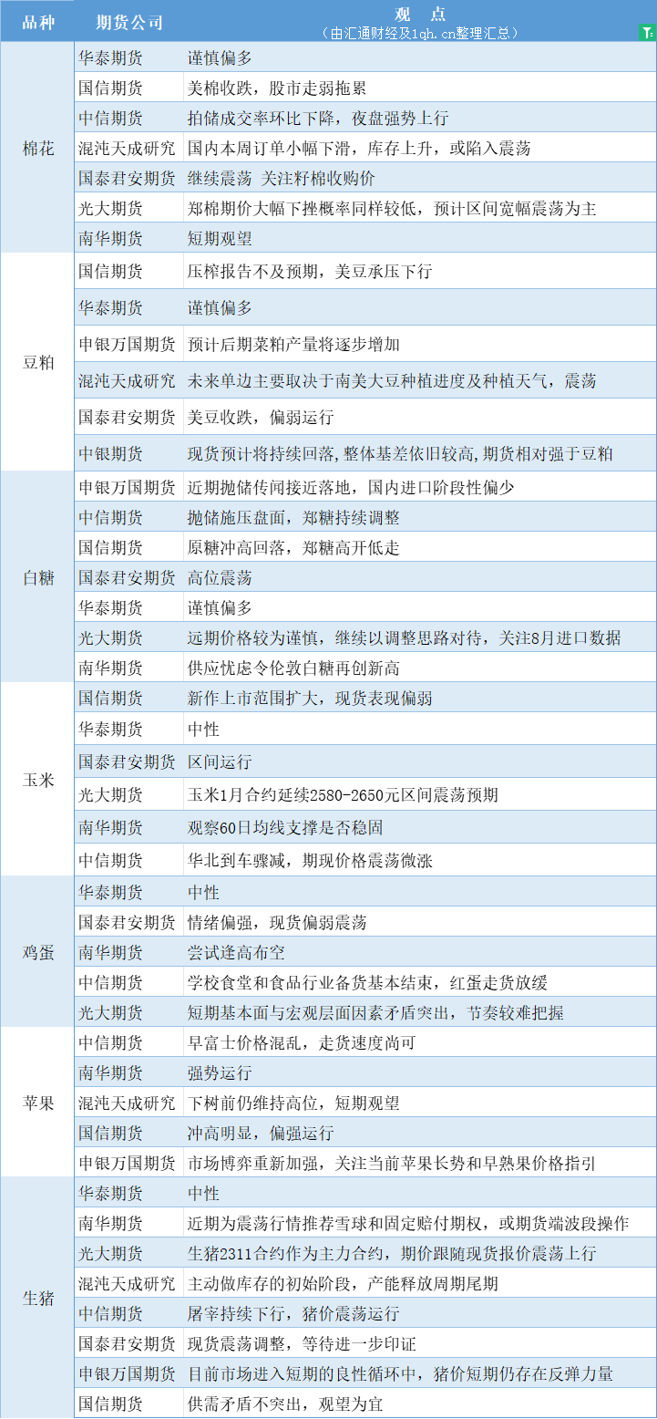 期货公司观点汇总一张图:9月18日农产品(棉花、豆粕、白糖、玉米、鸡蛋、生猪等)