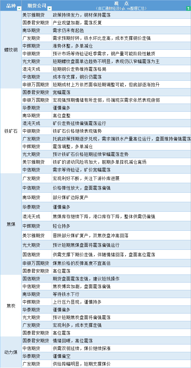 期货公司观点汇总一张图:9月7日黑色系(螺纹钢、焦煤、焦炭、铁矿石、动力煤等)