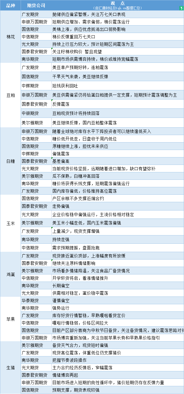 期货公司观点汇总一张图:8月25日农产品(棉花、豆粕、白糖、玉米、鸡蛋、生猪等)