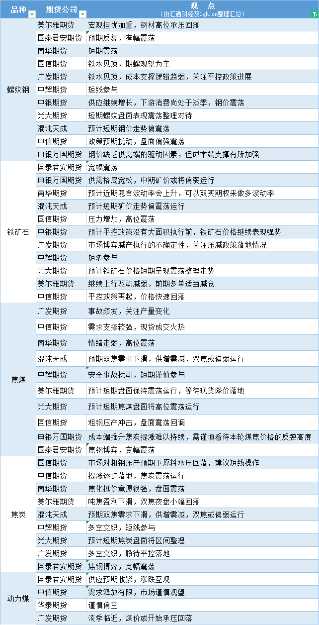期货公司观点汇总一张图:8月25日黑色系(螺纹钢、焦煤、焦炭、铁矿石、动力煤等)
