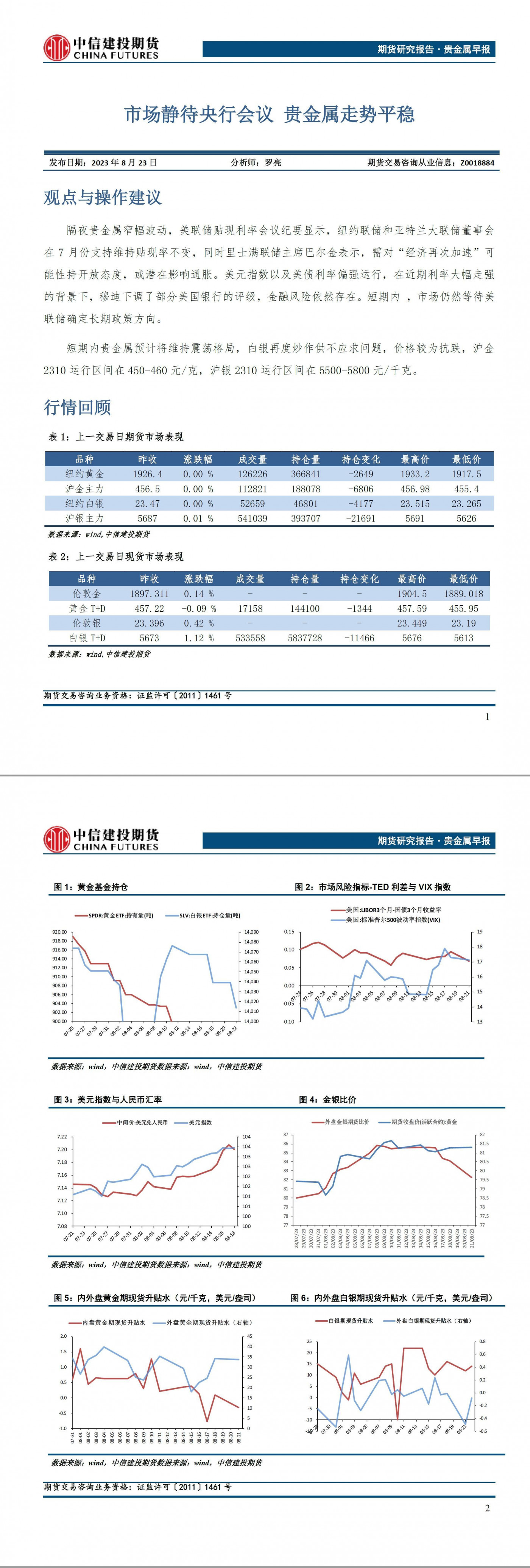 中信建投期货8月23日贵金属早报:市场静待央行会议,贵金属走势平稳