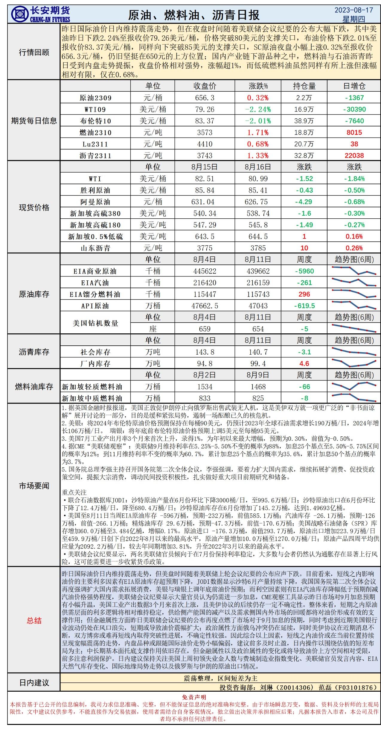 长安期货8月17日原油日报:会议纪要重燃加息预期,供需博弈油价或宽幅震荡