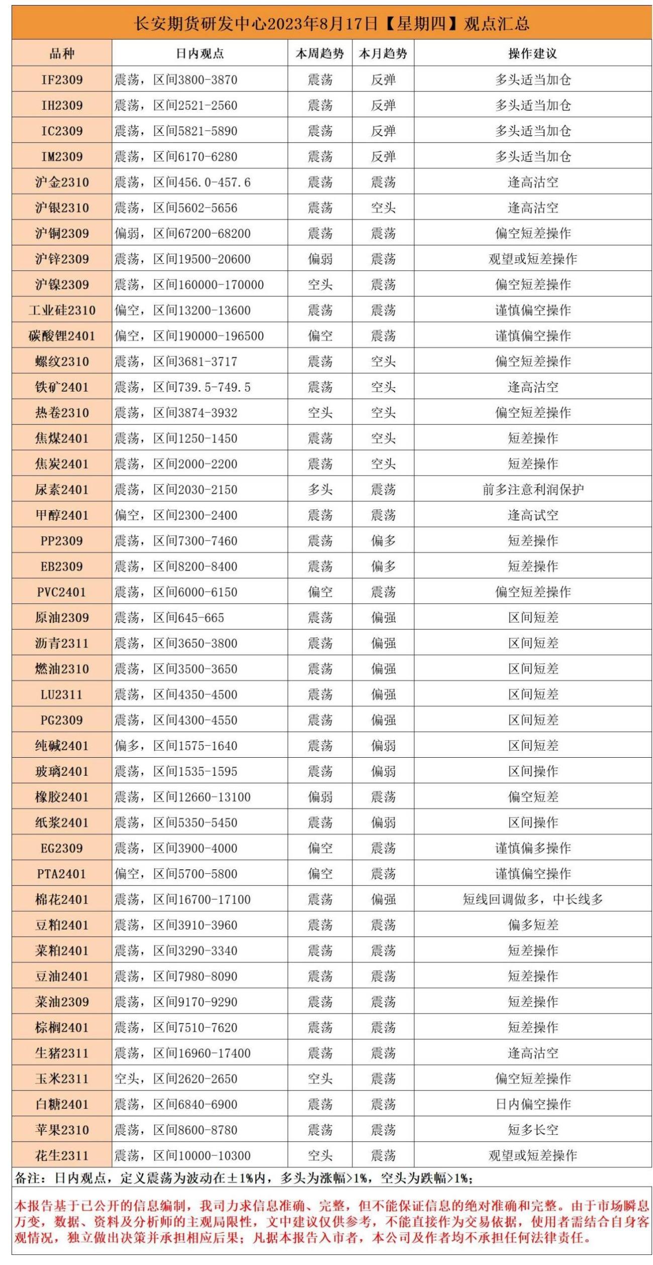 长安期货8月17日早间看盘
