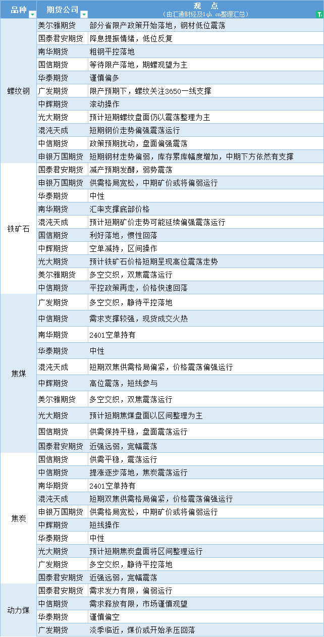 期货公司观点汇总一张图:8月16日黑色系(螺纹钢、焦煤、焦炭、铁矿石、动力煤等)