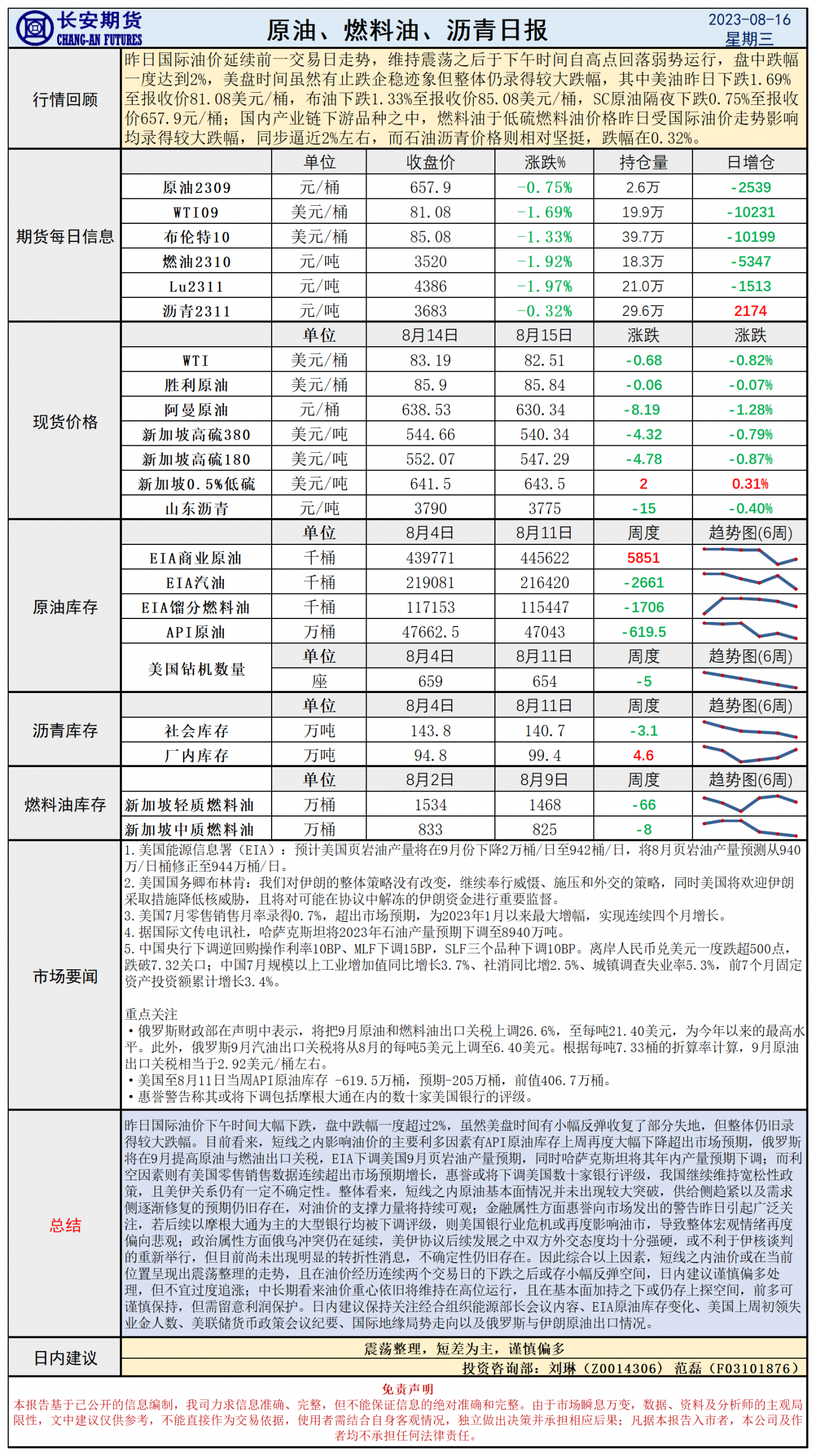 长安期货8月16日原油早评:需求难以验证宏观情绪悲观,油价大幅下跌后或维持震荡整理