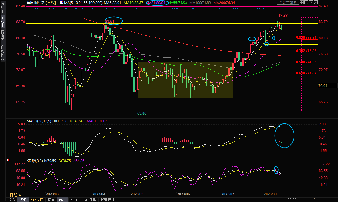 一张图:2023/08/11黄金原油外汇股指"枢纽点+多空占比"一览