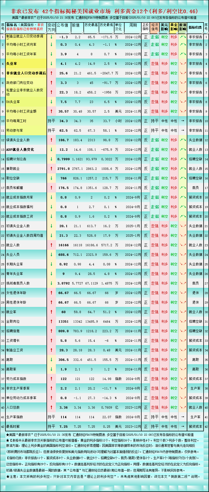 非农后一张图42个美国就业指标,对黄金利多/利空比降至0.46
