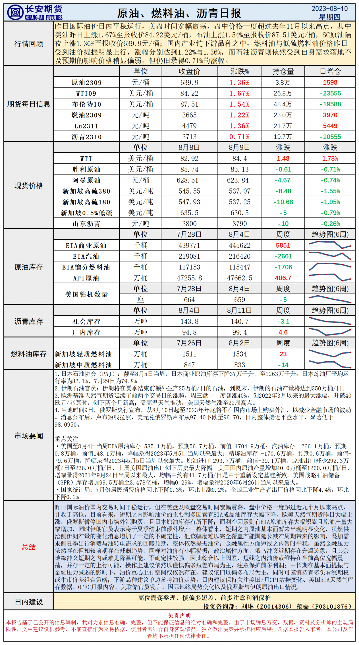 长安期货8月10日原油早评:油价高位再做突破,日内关注美国CPI与OPEC月报