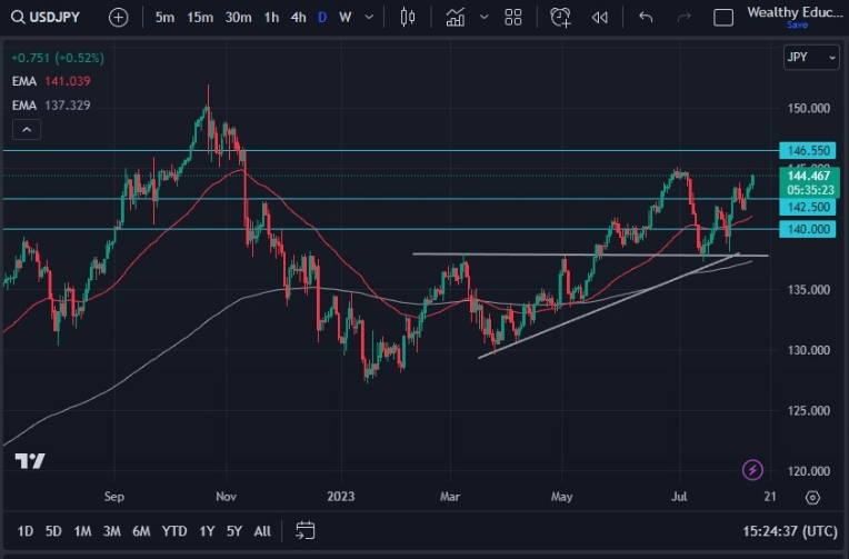 美元兑日元延续上行趋势,接近上方阻力短期谨慎看涨