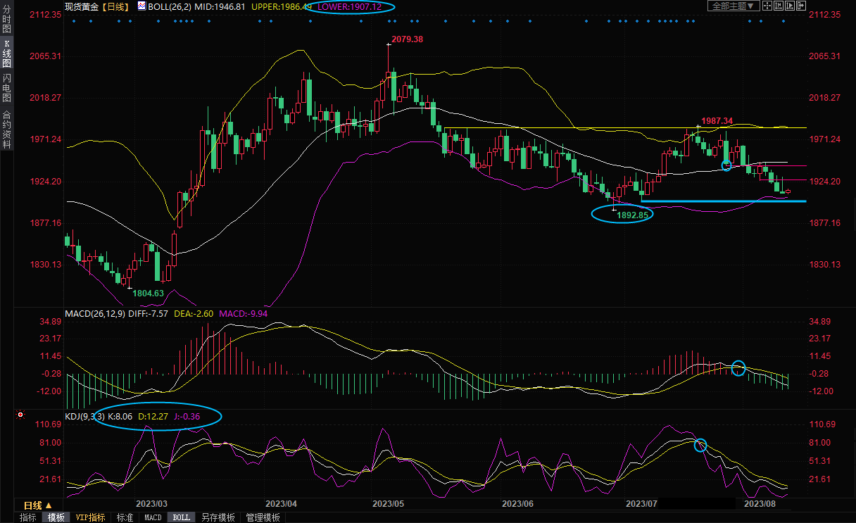 一张图:2023/08/10黄金原油外汇股指"枢纽点+多空占比"一览