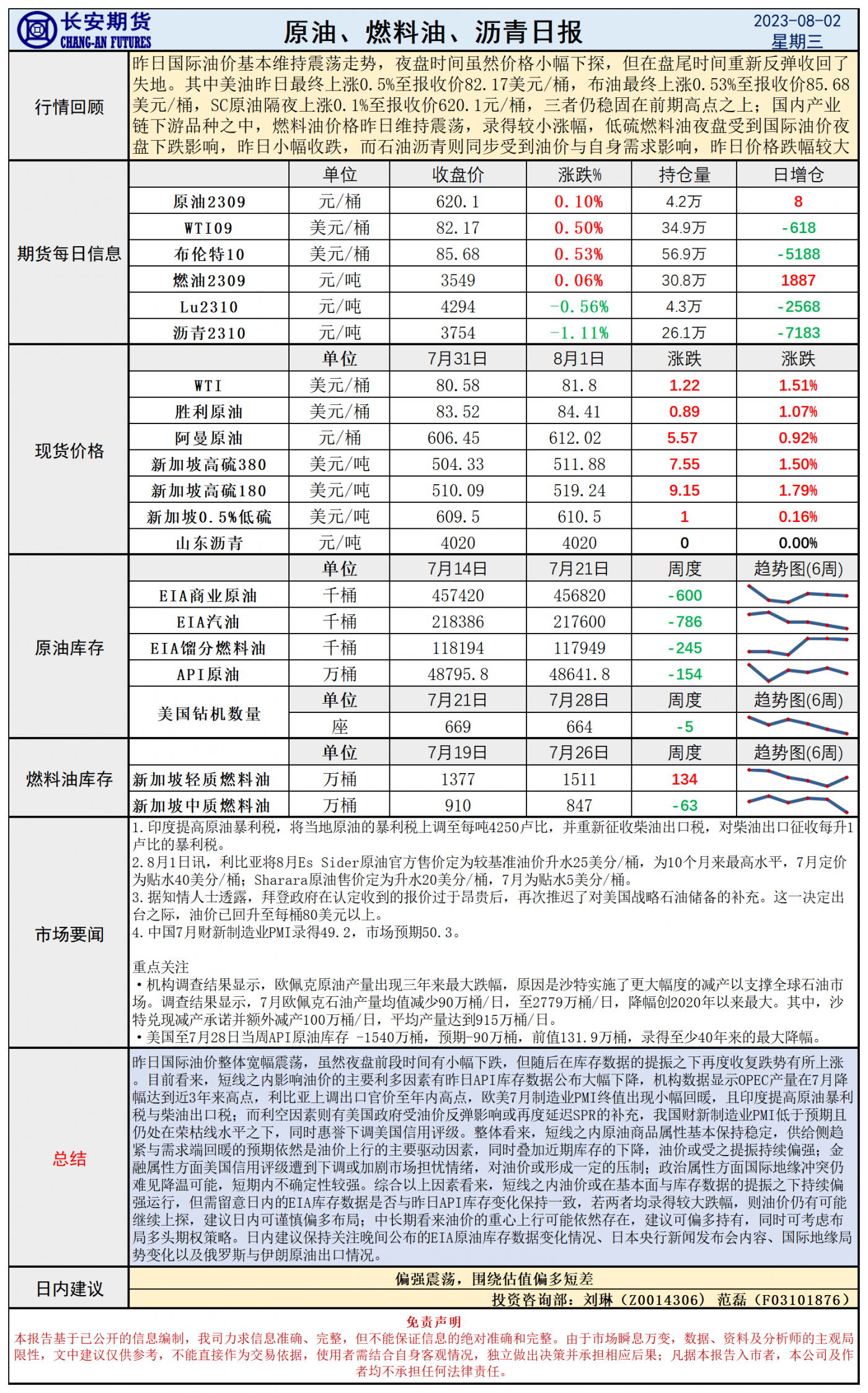 长安期货8月2日原油早评:API库存骤降提振油价,日内关注EIA库存变化