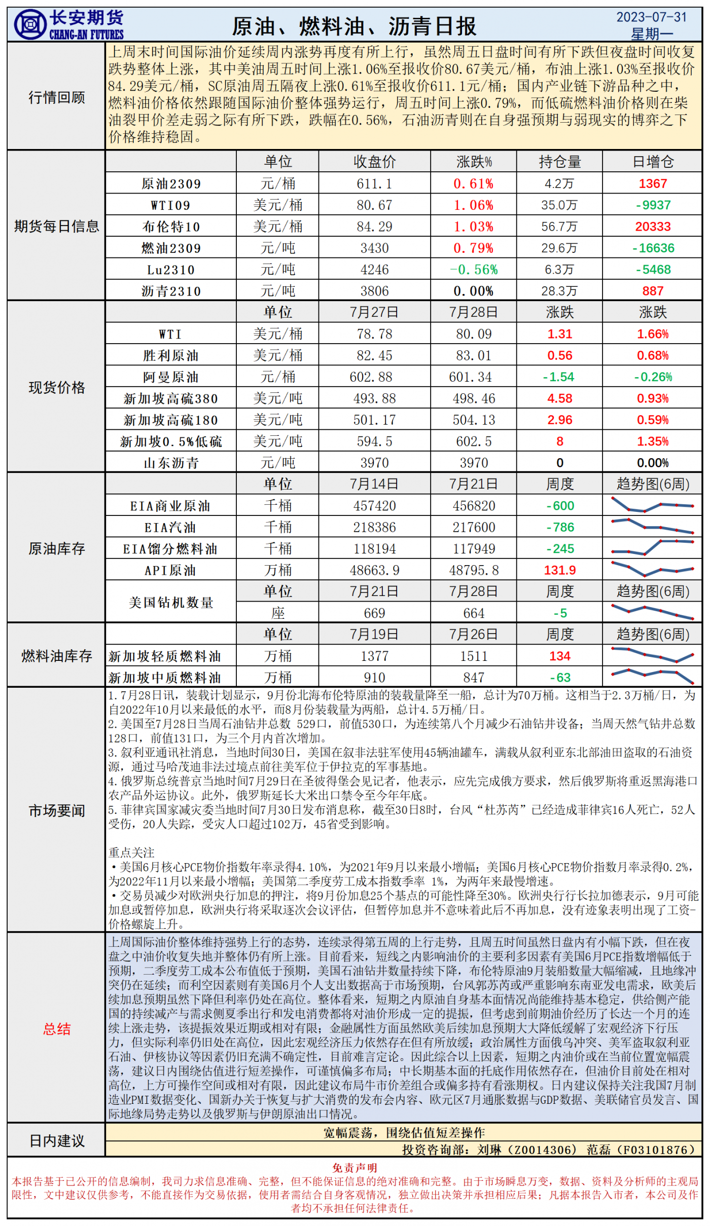 长安期货7月31日原油日报:美国经济数据持续强势,国内制造业PMI与修复消费会议或引发关注