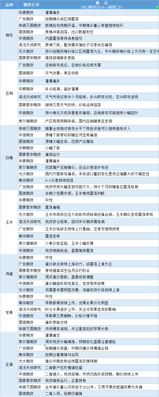 期货公司观点汇总一张图:7月31日农产品(棉花、豆粕、白糖、玉米、鸡蛋、生猪等)
