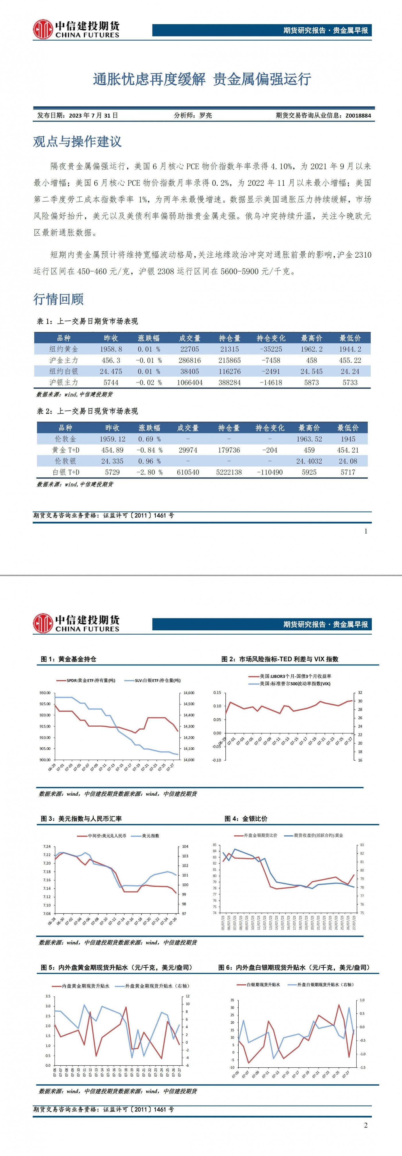 中信建投期货7月31日贵金属早报:通胀忧虑再度缓解,贵金属偏强运行