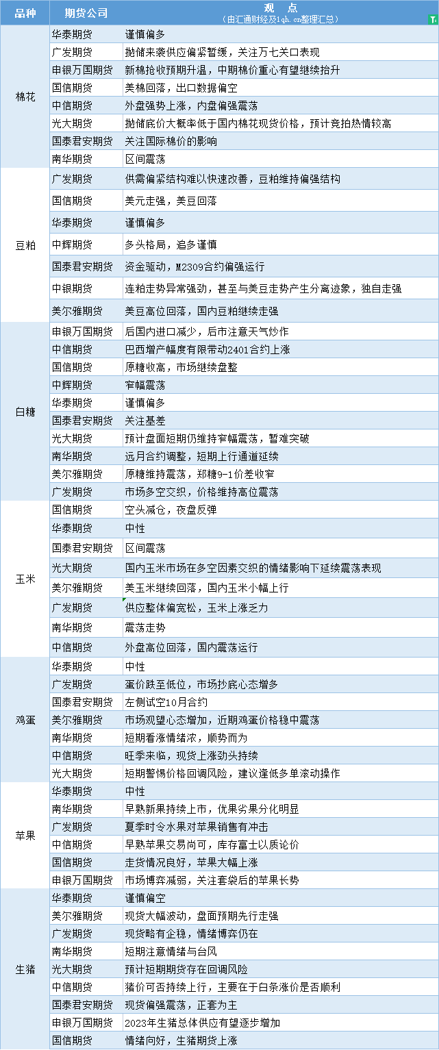 期货公司观点汇总一张图:7月28日农产品(棉花、豆粕、白糖、玉米、鸡蛋、生猪等)