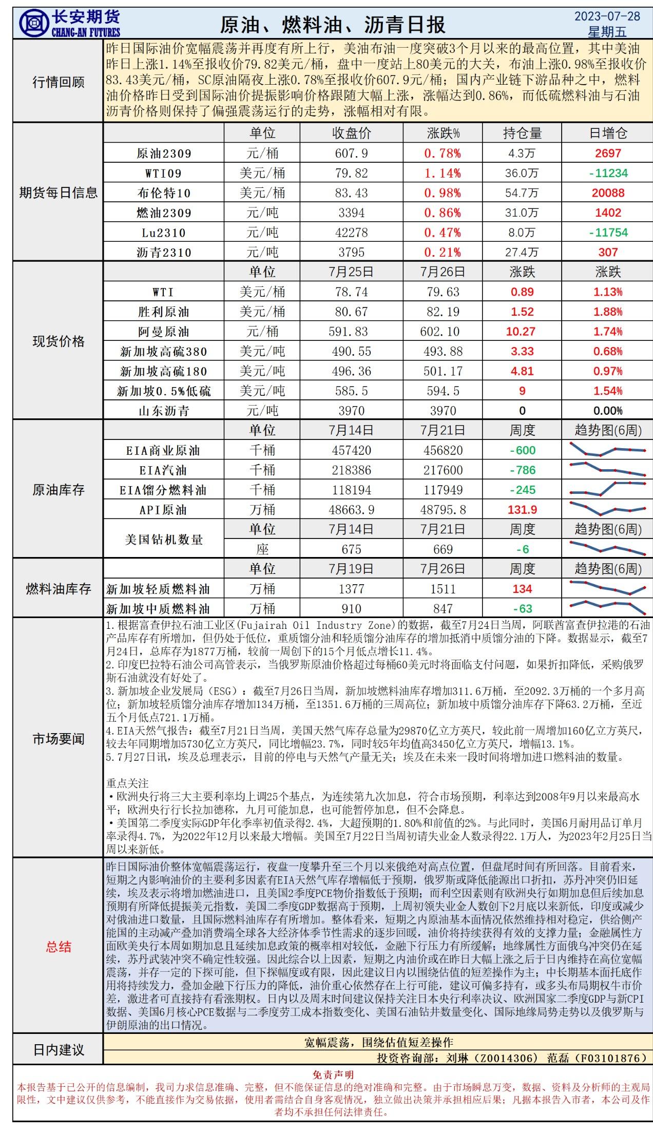 【东海期货7月28日产业链日报】能化篇:美国经济需求前景改善,美油升破80