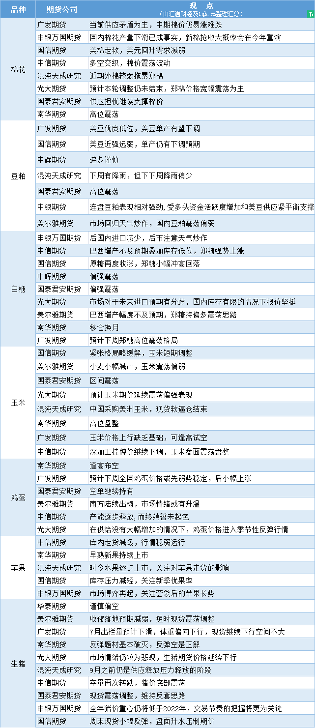 期货公司观点汇总一张图:7月17日农产品(棉花、豆粕、白糖、玉米、鸡蛋、生猪等)