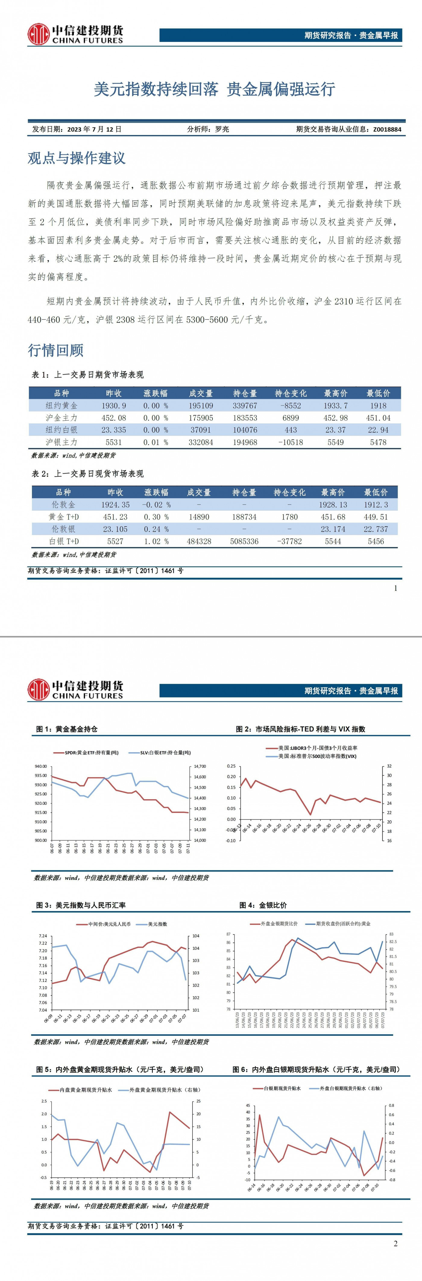 中信建投期货7月12日贵金属早报:美元指数持续回落,贵金属偏强运行