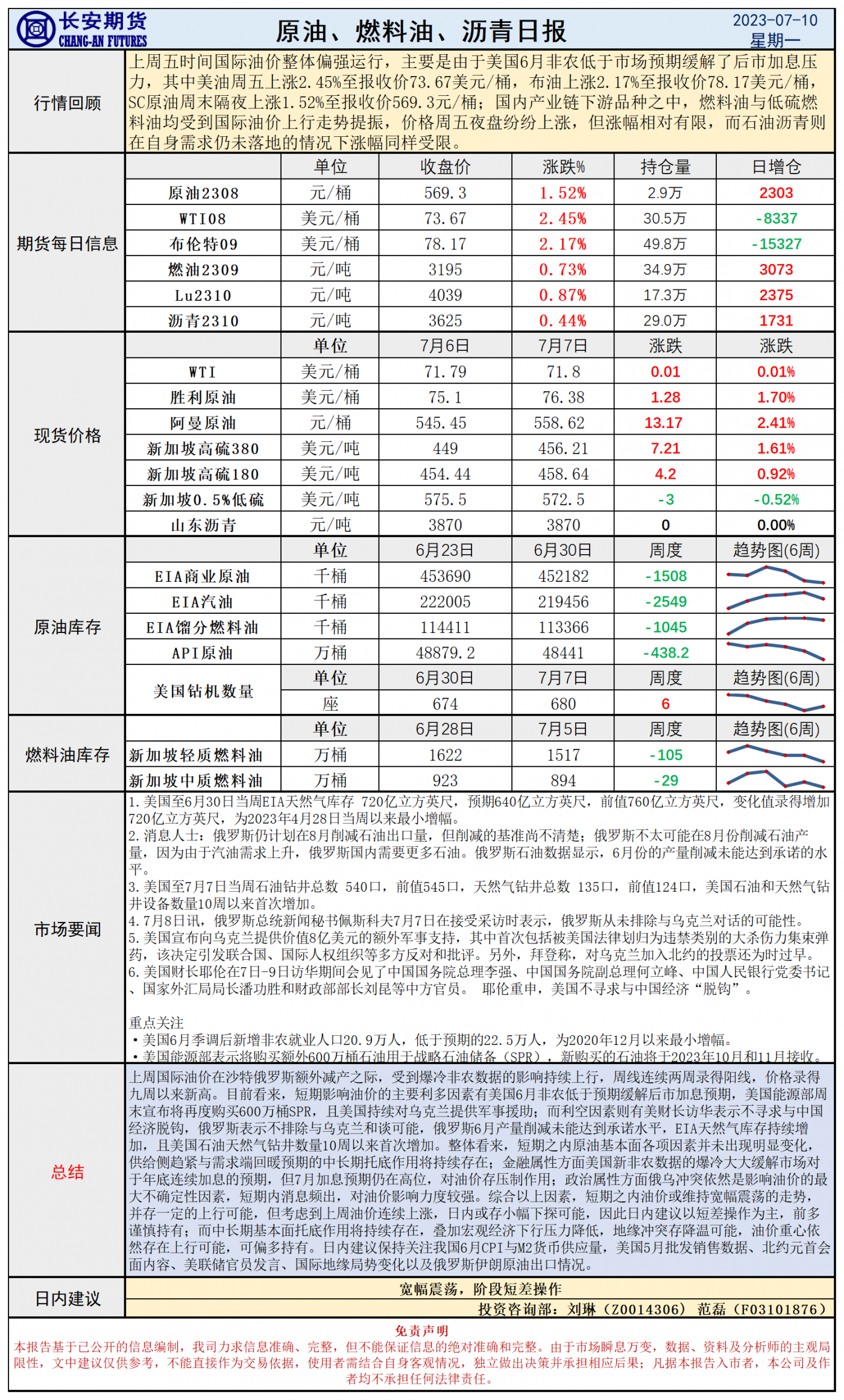 长安期货7月10日原油早评:非农爆冷美国再度收储,多空博弈油价或维持震荡
