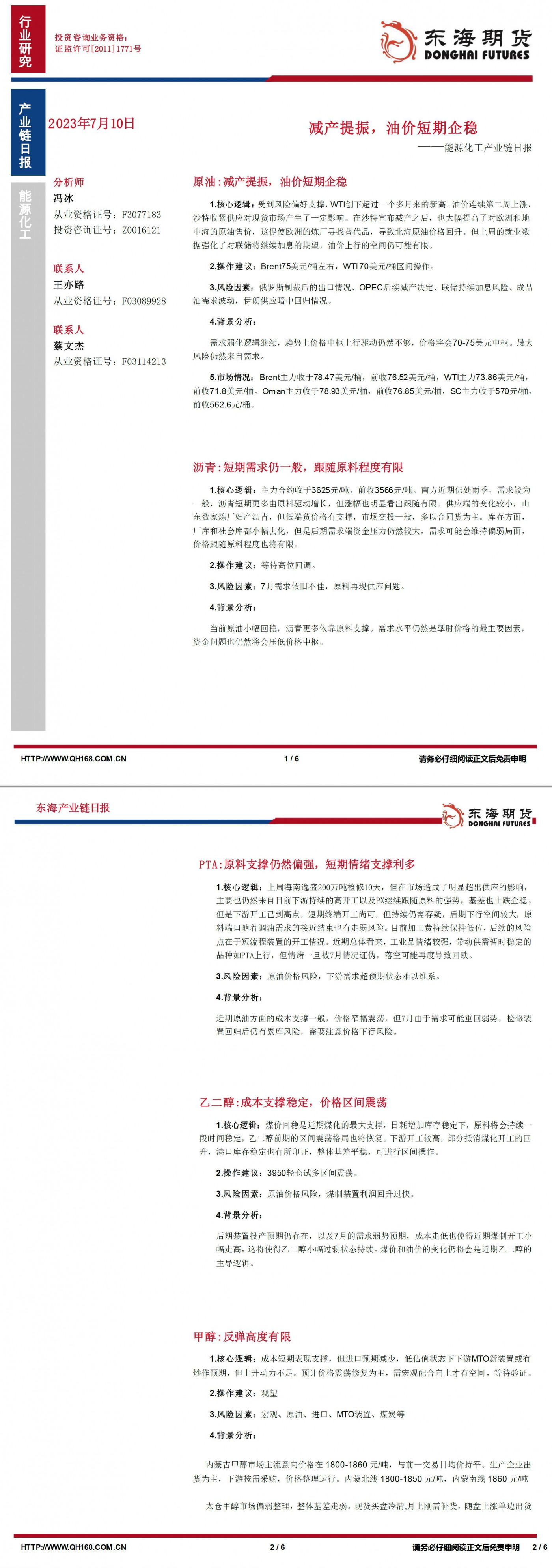 【东海期货7月10日产业链日报】能化篇:减产提振,油价短期企稳