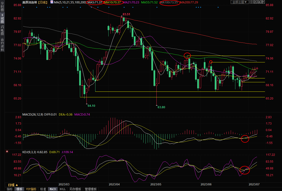 一张图:2023/07/07黄金原油外汇股指"枢纽点+多空占比"一览
