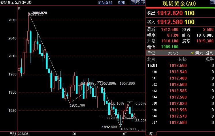 国际金价料跌破1906美元