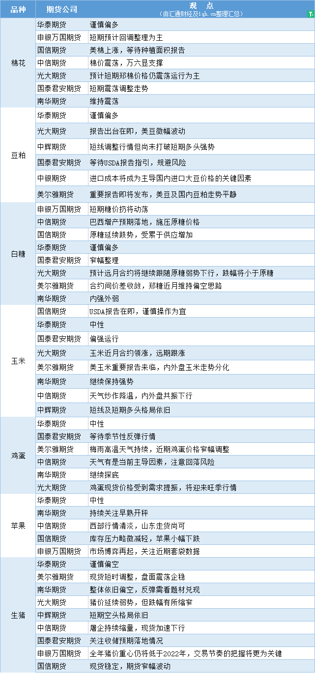 期货公司观点汇总一张图:6月30日农产品(棉花、豆粕、白糖、玉米、鸡蛋、生猪等)
