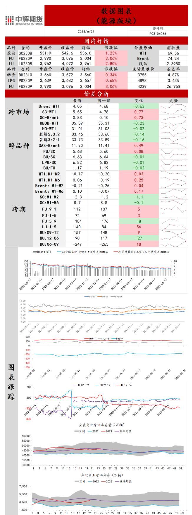 【东海期货6月29日产业链日报】能化篇:库存降幅超预期,油价小涨