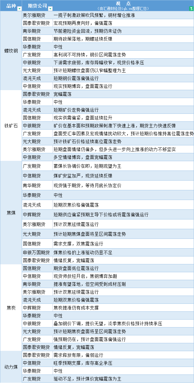 期货公司观点汇总一张图:6月28日黑色系(螺纹钢、焦煤、焦炭、铁矿石、动力煤等)