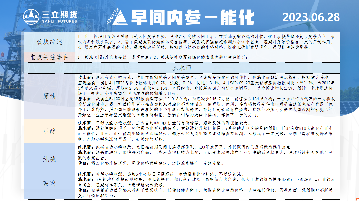 三立期货6月28日早间内参——能化